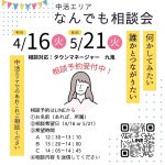 2024年4月5日 / 最終更新日時 : 2024年4月26日 owner 川西市中活エリアなんでも相談会開催【4/16満席・5/21満席】 毎月第3火曜日に「中活エリアなんでも相談会」を開催しています 2024年4/16(火)【満席】・5/21(火)【B枠のみ募集】開催。 中活エリア「なんでも相談会」の予約受付を開始しました。 イベントをしてみたいけど、何か […]